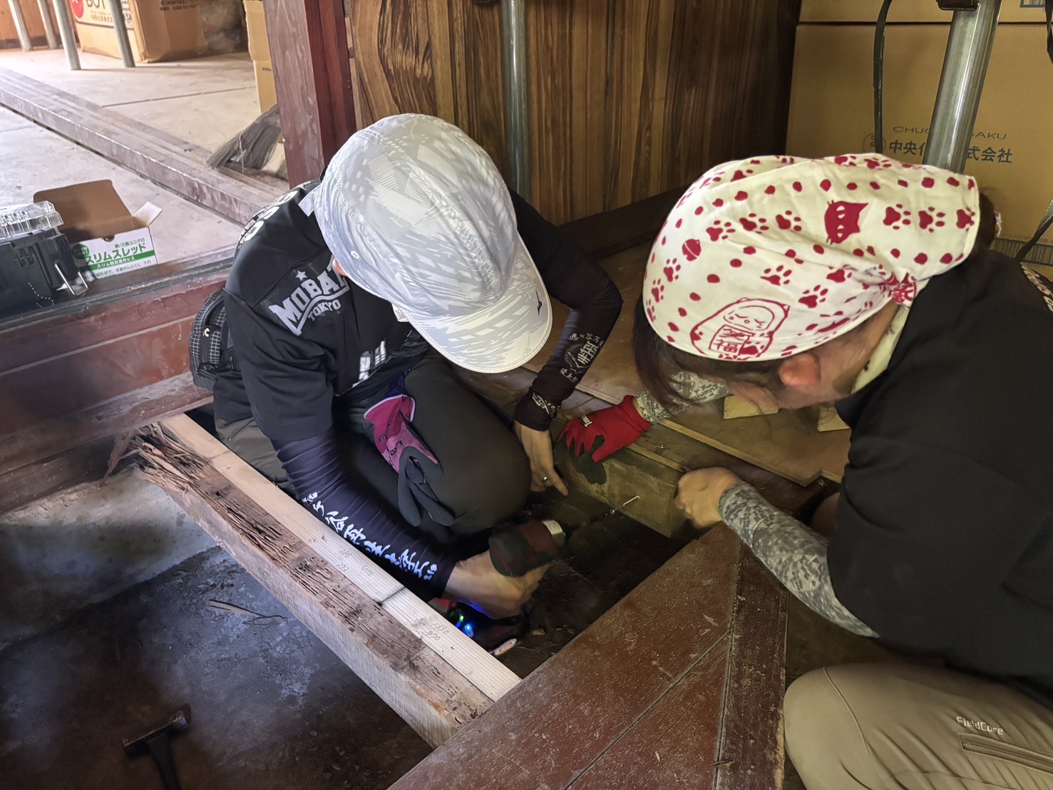 能登へ行ってきました。今回は片付け・床修理・壁修理を行いました。道中は道もきれいになっていたり、解体が進んでいたり変化を感じました。片付けでは、家主さんも一緒に仕分けを行い解体へむけての準備をしました!外壁補修では、危険な箇所を取り除き板張りをして補修し安全な状態に。地震・豪雨災害後まだまだ危険個所はあります。ボランティア活動後は、能登でお買い物をして買って応援も忘れずに。能登のさくら醤油・豆腐等はお気に入りです!